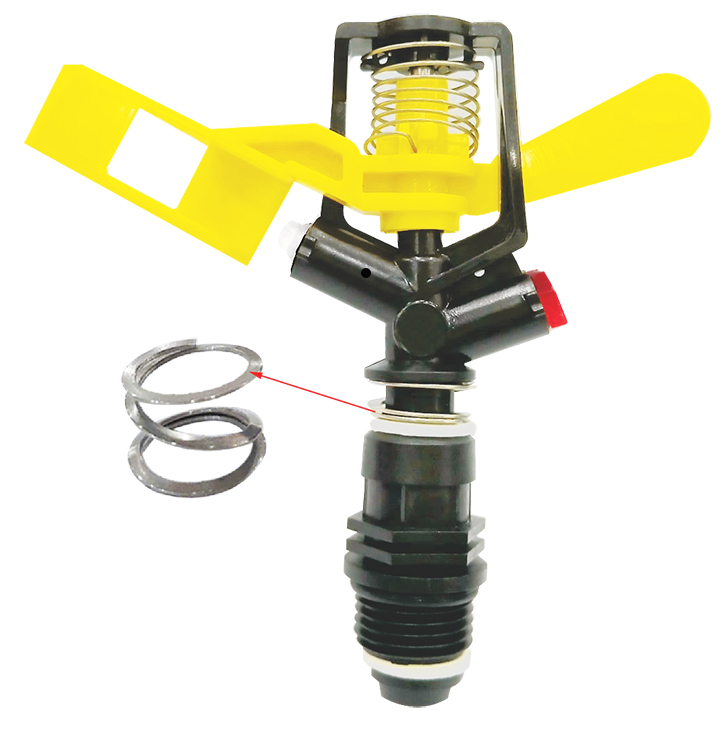 Một trong những điểm yếu của đầu phun tưới cánh đập truyền thống là cần áp lực mạnh để xoay. Tuy nhiên, với thiết kế lò xo thép không gỉ đàn hồi cực tốt, béc tưới áp lực thấp BB-922-3T có thể bắt đầu xoay chỉ với áp suất từ 0.4 bar. Điều này cực kỳ quan trọng cho những trang trại có địa hình dốc hoặc sử dụng máy bơm công suất nhỏ.