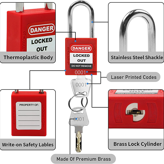 - Ổ khóa an toàn (Safety Padlocks): Thường làm bằng vật liệu không dẫn điện (Xenoy hoặc Polyamide).