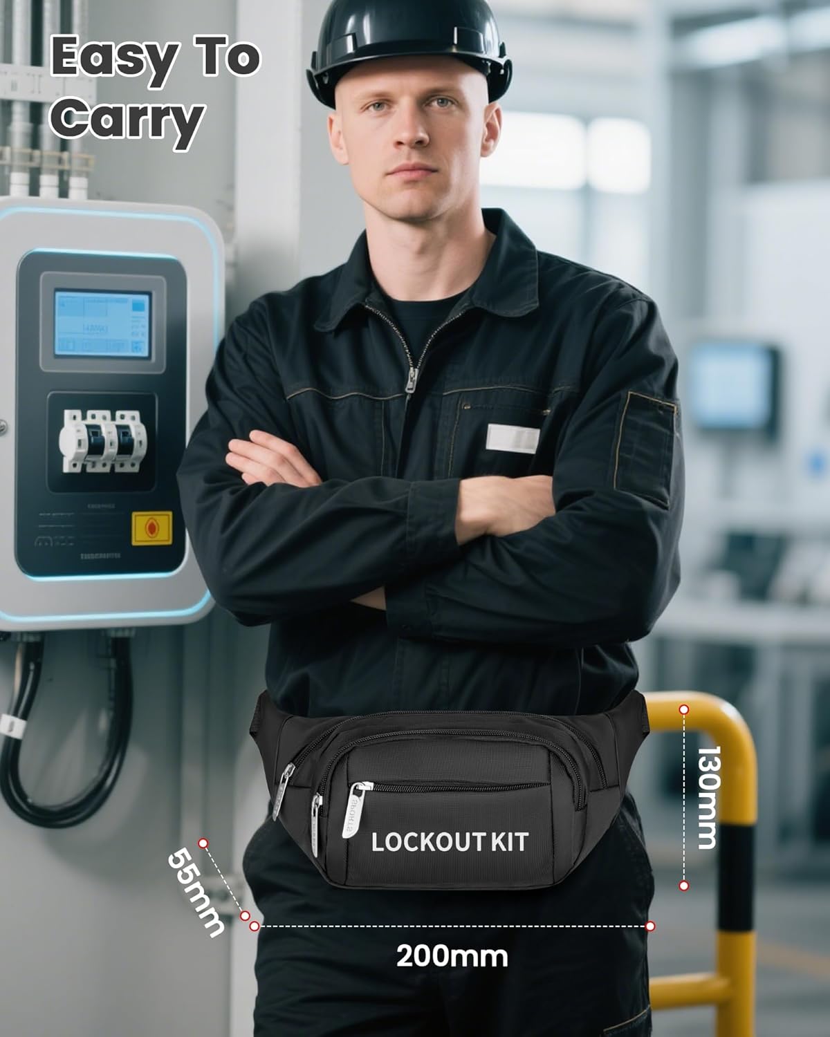 - Cách ly (Lockout): Sử dụng bộ khóa aptomat an toàn kèm túi đeo hông LG04 để khóa cầu dao. Gắn thẻ cảnh báo (Tagout).